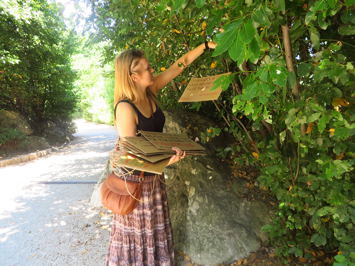 Opatija, 19.07.2016. – Šume pokrivaju 31% kopnene površine Zemlje. One proizvode vitalan proizvod za život – kisik, dom su za ljude i divlje životinje te imaju ključnu ulogu u ublažavanju klimatskih promjena, no širom svijeta su pod prijetnjom krčenja. Dan stabla, koji obilježava se 16. srpnja, posebna je prilika za naglašavanje koliko su nam ona potrebna za kvalitetu života kakvu poznajemo. Europski volonteri Udruge Žmergo obilježili su dan vješanjem poruka na stabla u Parku Angiolina, s ciljem podsjećanja prolaznika o važnosti brige o stablima i njihovom očuvanju.