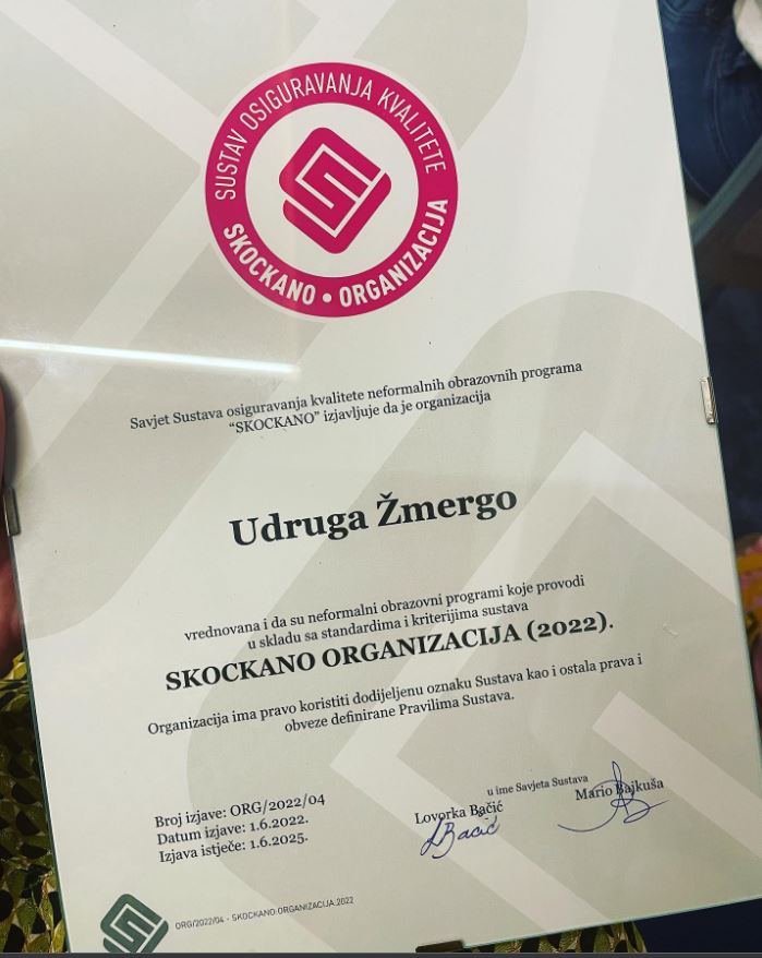 Udruzi Žmergo dodijeljena oznaka kvalitete za neformalne obrazovne programe