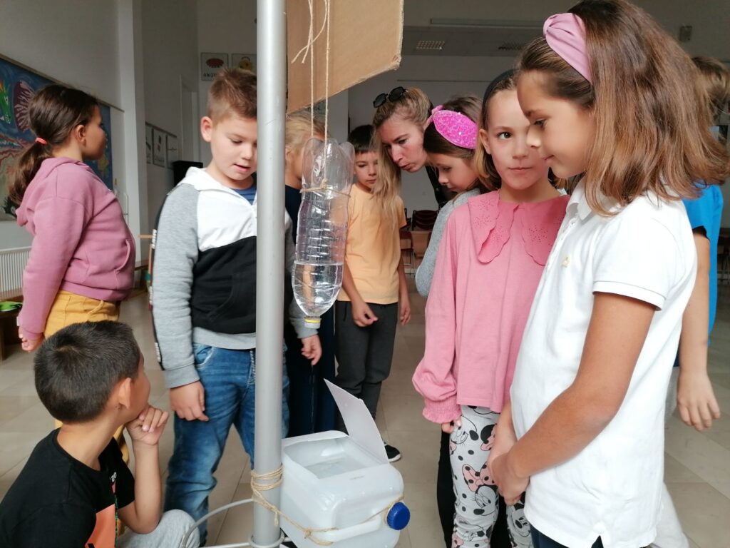 Učenici 3. b razreda imali su dva tima u projektu, a odlučili su se za pozabaviti kreativnim potencijalom otpada i vodom kao jednim od naših najvažnijih resursa. Tim okupljen oko vode je izradio instalaciju kojom su informirali i osvijestili za ilustraciju koliko se vode rasipa samo kroz pokvarene slavine, a tim koji se fokusirao na otpad izradio je viječu za preskakanje od korištenih plastičnih vrećica koje su učenici donijeli od doma.