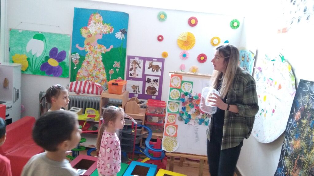 Radionice za predškolce i djecu vrtićke dobi osmišljene su kao ekološke igraonice u kojoj su sve igre izrađene u potpunosti od različitih vrsta otpada iz kućanstva. Kroz interaktivne i dinamične aktivnosti, sudionici su na zabavan način učili o otpadu, njegovim vrstama i kategorijama, te razvijali svijest o otpadu kao vrijednom resursu. Naglasak je stavljen na kreativni potencijal otpada, odnosno njegovu ponovnu upotrebu, čime se doprinosi očuvanju okoliša i racionalnom korištenju resursa. U ovom slučaju, otpad je poslužio kao materijal za izradu igara, što je sudionicima pružilo praktičan primjer kreativne prenamjene.